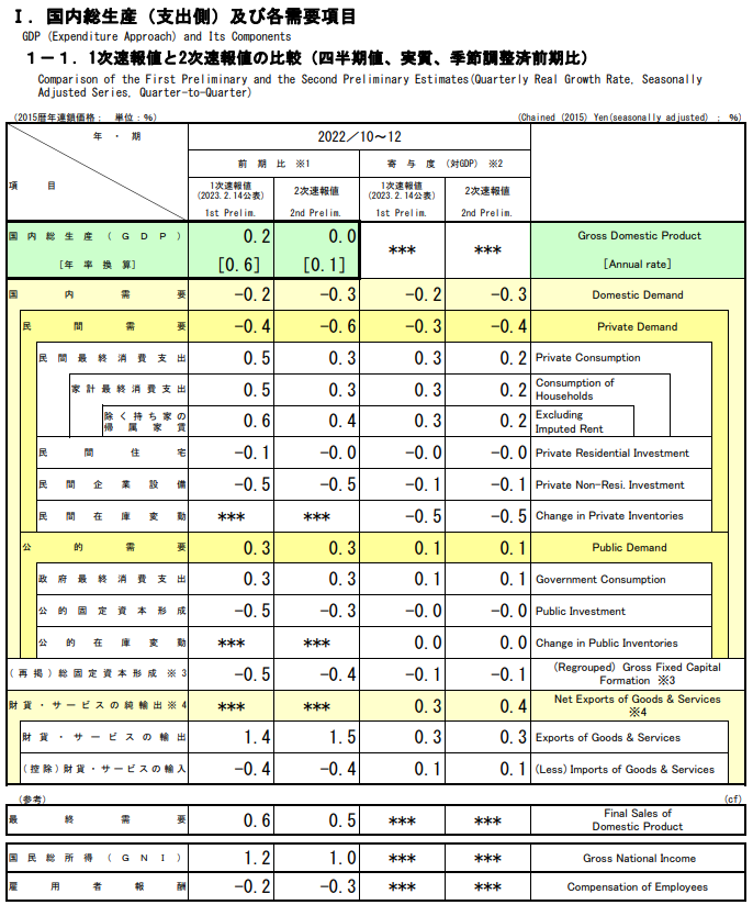 | 2023年1-3月期(2次速報) | 2023(令和5)年6月8日(木) |