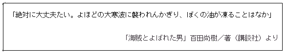 「海賊とよばれた男」では、満州鉄道を舞台に、外資系会社と主人公が「寒さに強い油」を競う場面があります。