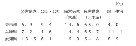 で、愛知県は公営借家の割合が東京都の約2倍と、公営借家が充実しています。