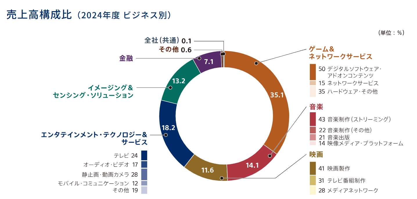テレビやオーディオ、カメラ、スマホなどいわゆる家電部門は、「エンターテインメント・テクノロジー&サービス」でくくられていて、売り上げ全体の18.2%、5分の1以下になっています。いまや主力は、ゲーム&ネットワークサービス、その他に音楽、映画、金融、センサーなどの先端機器といった分野も一定の売り上げをあげている、といった具合です。