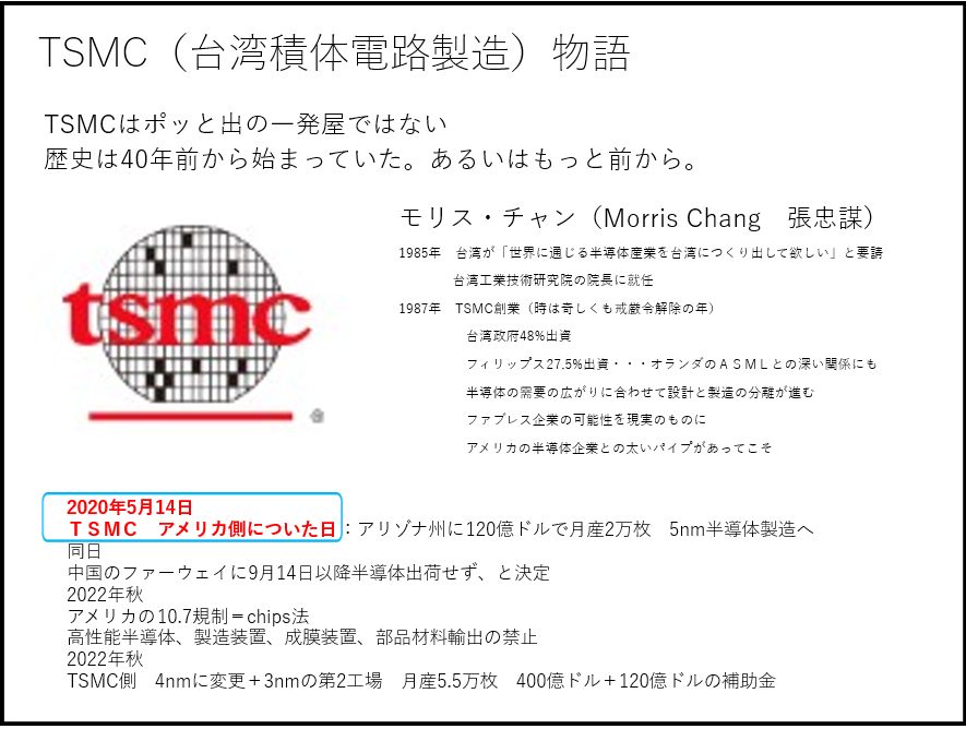TSMCの歴史を簡単にまとめた資料をご参考に添付しておきます。