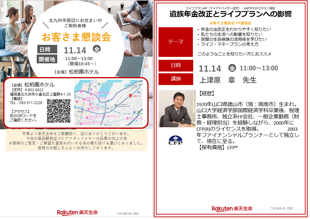 提携CFP®、マイアドバイザー®の 上津原 章さんが以下の講演会で講師を務めます。