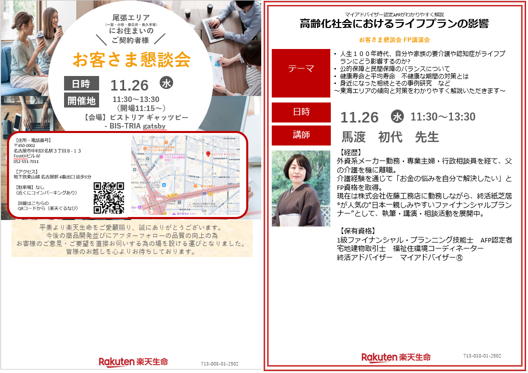 AFP/マイアドバイザー®の馬渡初代さんが以下の講演会で講師を務めます。