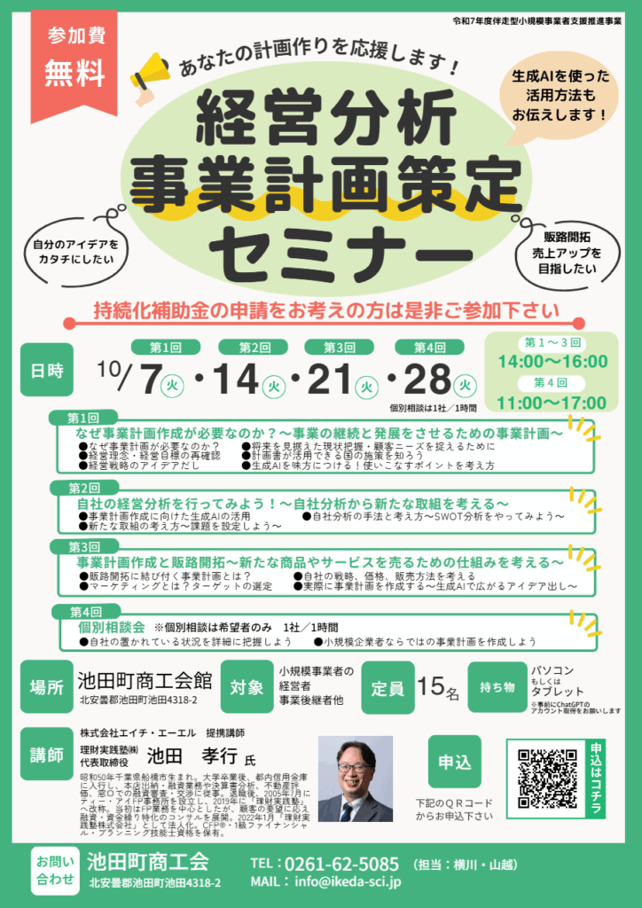 提携CFP®︎/マイアドバイザー®︎ 池田孝行さんが、「経営分析・事業計画策定セミナー」にて、講師を務めました。