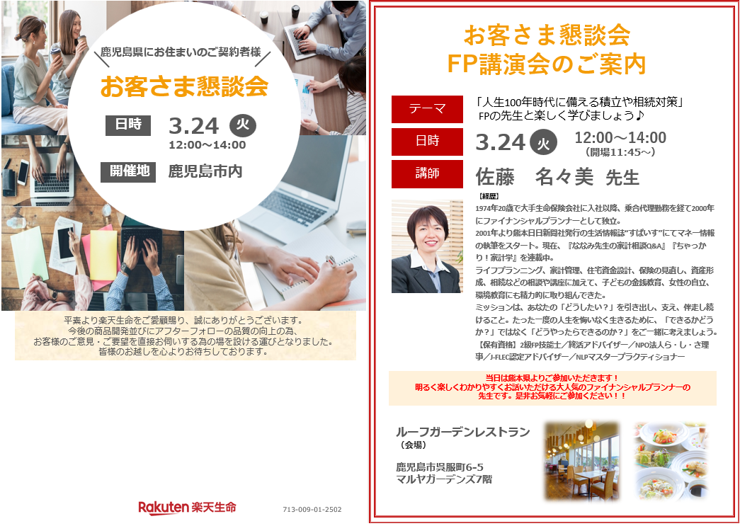 マイアドバイザー®・ライフプランFP®の 佐藤 名ゝ美 さんが以下の講演会で講師を務めました。