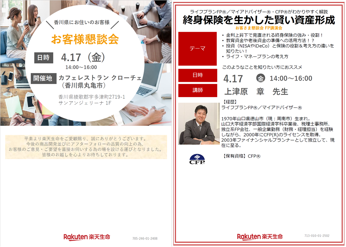 マイアドバイザー®/ライフプランFP®の 上津原 章 さんが以下の講演会で講師を務めます。